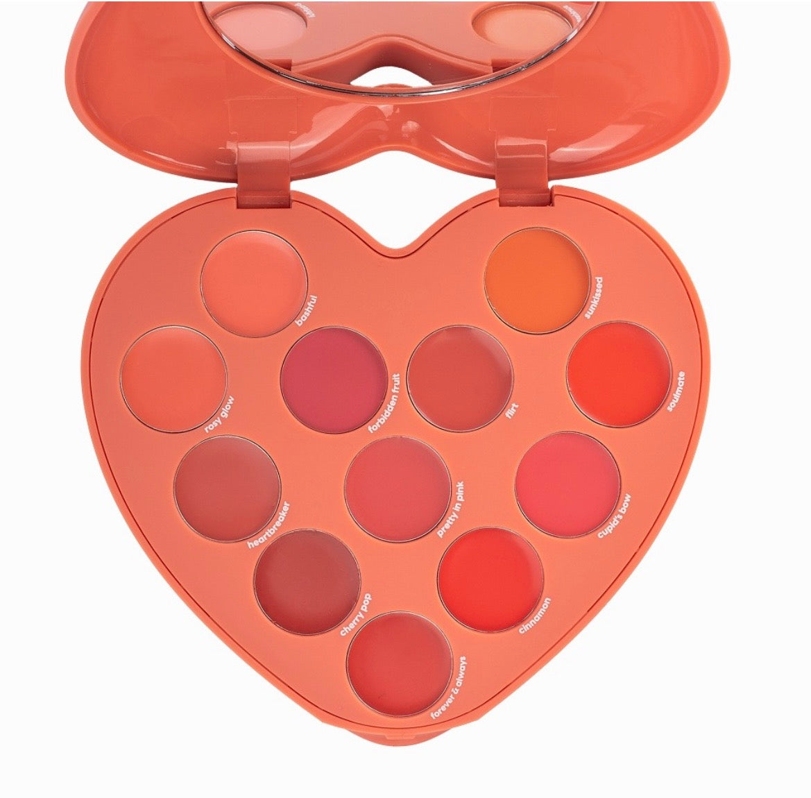 Discover the perfect lip and cheek shades with the Love Locket Lip & Cheek Set. This set features 12 buildable and blendable colors, designed to flatter any skin tone. Infused with meadfoam seed oil, vitamin e, and sodium hyaluronate, these shades not only enhance your look but also improve skin texture. Made with anti-aging ingredients, this vegan and cruelty-free makeup set is a lightweight, hydrating choice that acts like skincare.